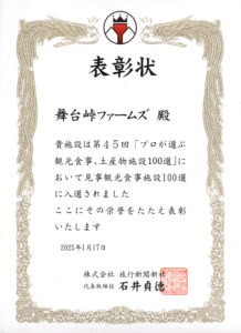 プロが選ぶ観光食事・土産物施設100選 入選